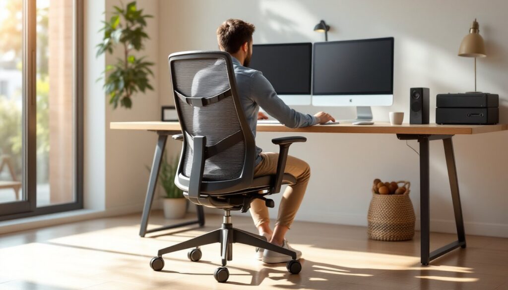 The advantage of neutrals is flexibility. You can change your desk, chair, wall art, and lighting without the wall color fighting your choices. This matters if you’re renting, if you like to refresh your space frequently, or if you’re unsure about committing to color. Neutrals are also safer if your office is a small desk workspace that needs to feel open and uncluttered.